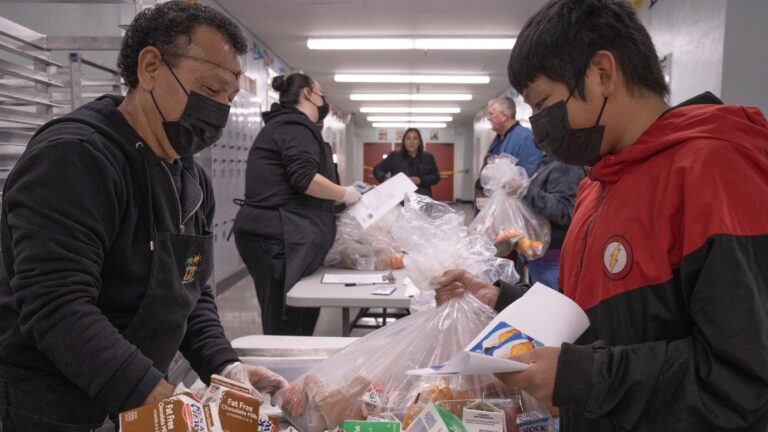 Jose Centeno hands food to LAUSD student Jesus Sanchez at Hollenbeck Middle School on Friday, Jan. 10. Jireh Deng for NPR hide caption toggle caption Jireh Deng for NPR More than 600,000 students in and around Los Angeles have had…