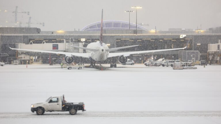 Snow blankets the Hartsfield-Jackson Atlanta International Airport on Friday as a winter storm moves into the Atlanta area. Joe Raedle/Getty Images hide caption toggle caption Joe Raedle/Getty Images A winter storm has slammed into several states, leaving a blanket of…
