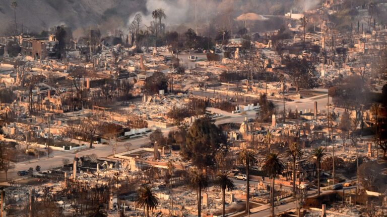 Homes burned in the Palisade fire smolder near the Pacific Palisades neighborhood of Los Angeles on Thursday. Swaths of the United States’ second-largest city lay in ruins, with smoke blanketing the sky and an acrid smell pervading almost every building.…