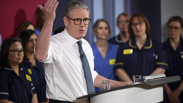 Britain’s Prime Minister Keir Starmer gives a speech on reducing NHS wait times as he visits a health care provider in Surrey, England, Monday, Jan. 6, 2025. Leon Neal/AP/Pool Getty Images Europe hide caption toggle caption Leon Neal/AP/Pool Getty Images…