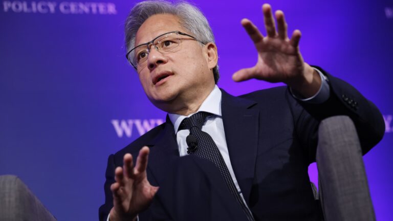 Jensen Huang, the founder, chairman and CEO of Nvidia, talks about the future of artificial intelligence and its effect on energy consumption and production at the Bipartisan Policy Center in Washington, DC, on September 27, 2024 . Chip Somodevilla |…