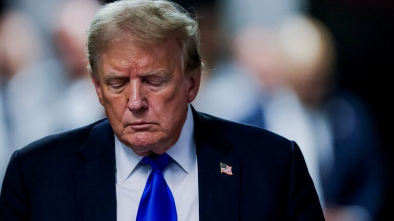 Former US President Donald Trump leaves court after a jury found him guilty of all 34 crimes in his criminal trial in New York State Supreme Court in New York on May 30 in 2024. Justin Lane | Via Reuters…