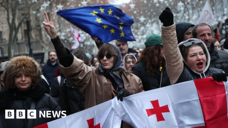 Thousands of Georgian protesters have formed a chain of people in the capital Tbilisi, ahead of a political event as the new president prepares to be sworn in. The inauguration of the new president – former Manchester City player Mikheil…