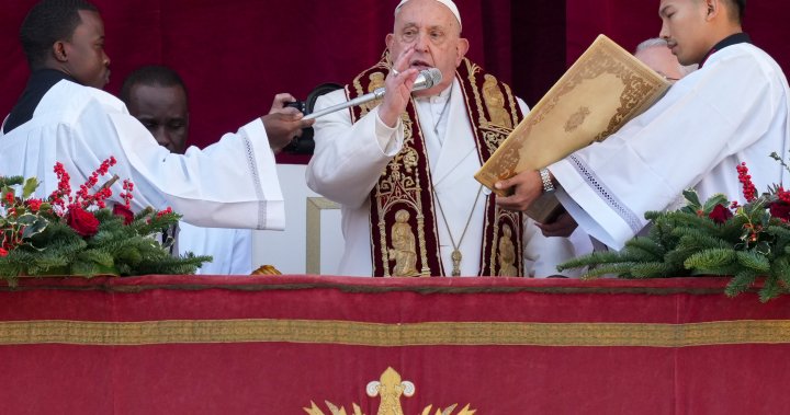 Pope Francis calls for “arms to be silenced” around the world, appealing for peace in the Middle East, Ukraine and Sudan in his Christmas address as he denounces the “extremely grave” humanitarian situation in Gaza. He used his traditional message…