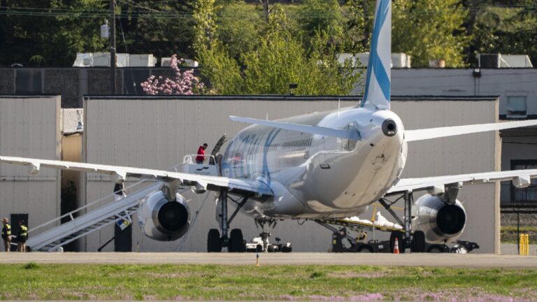 Detainees board a plane chartered by U.S. Immigration and Customs Enforcement (ICE) at King County International Airport on April 15, 2025 in Seattle, Washington. Semi-regular flights carrying detainees pass through the airport as the Trump administration continues to plan for…