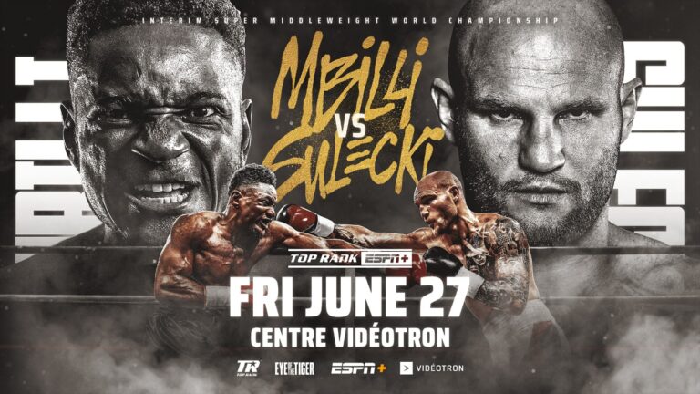 Christian Mbilly faces Macie Sulletskim for VBC Infrem 168-LB Channel 27. June, 27. June, Live on ESPN+ In the 12-round headliner at the Videotrone Center in Kuebec. MBILLI (28-0, 23 KOS) puts its ranking of VBC at risk dealing with…