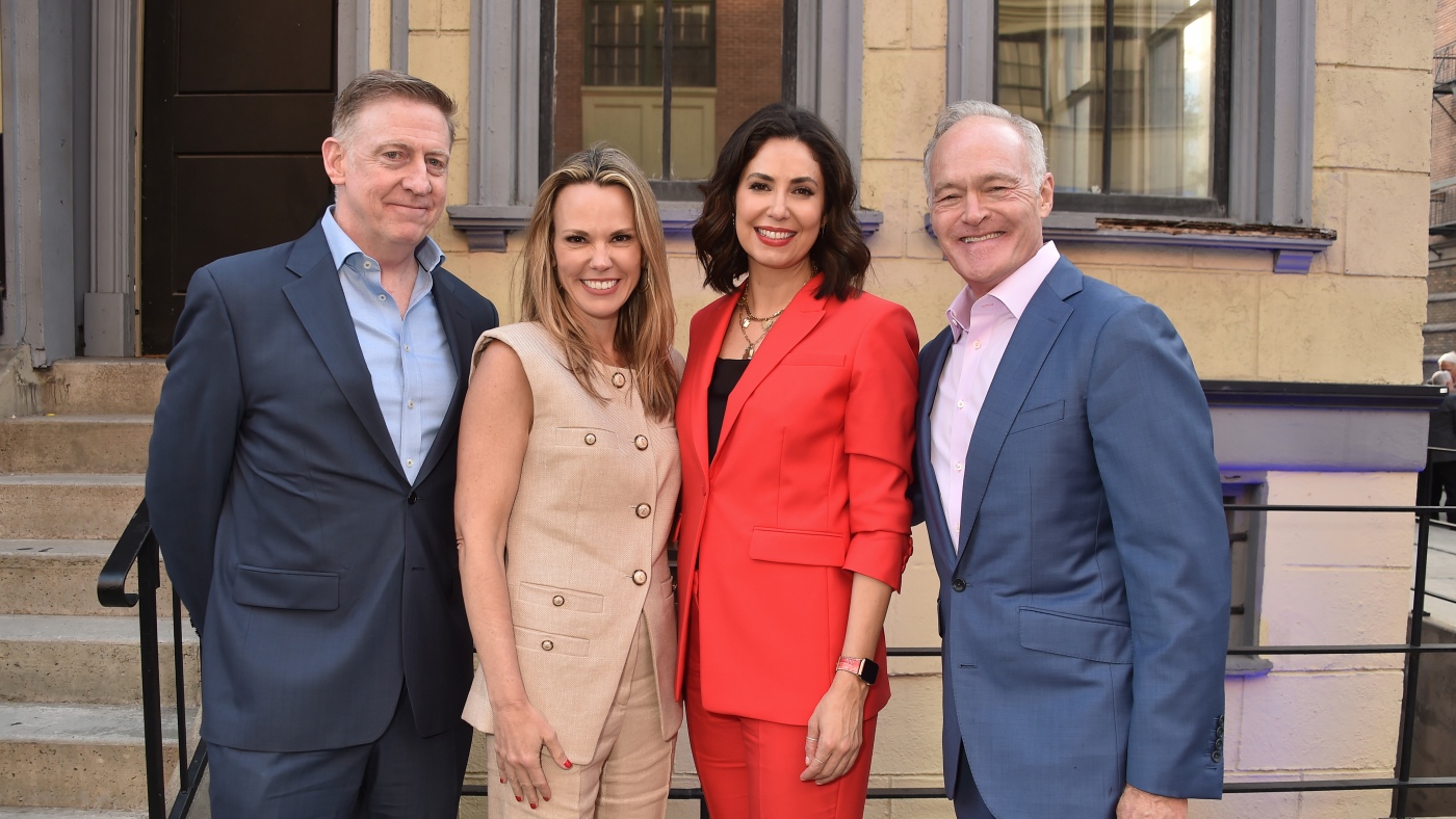 CBS News President Wendy McMahon resigned on Monday. Here, McMahon (second from left) stands with former 60 Minutes Executive Producer Bill Owens and two of the show’s correspondents, Cecilia Vega and Scott Pelley, at the CBS fall schedule celebration held at Paramount Studios in May 2024.