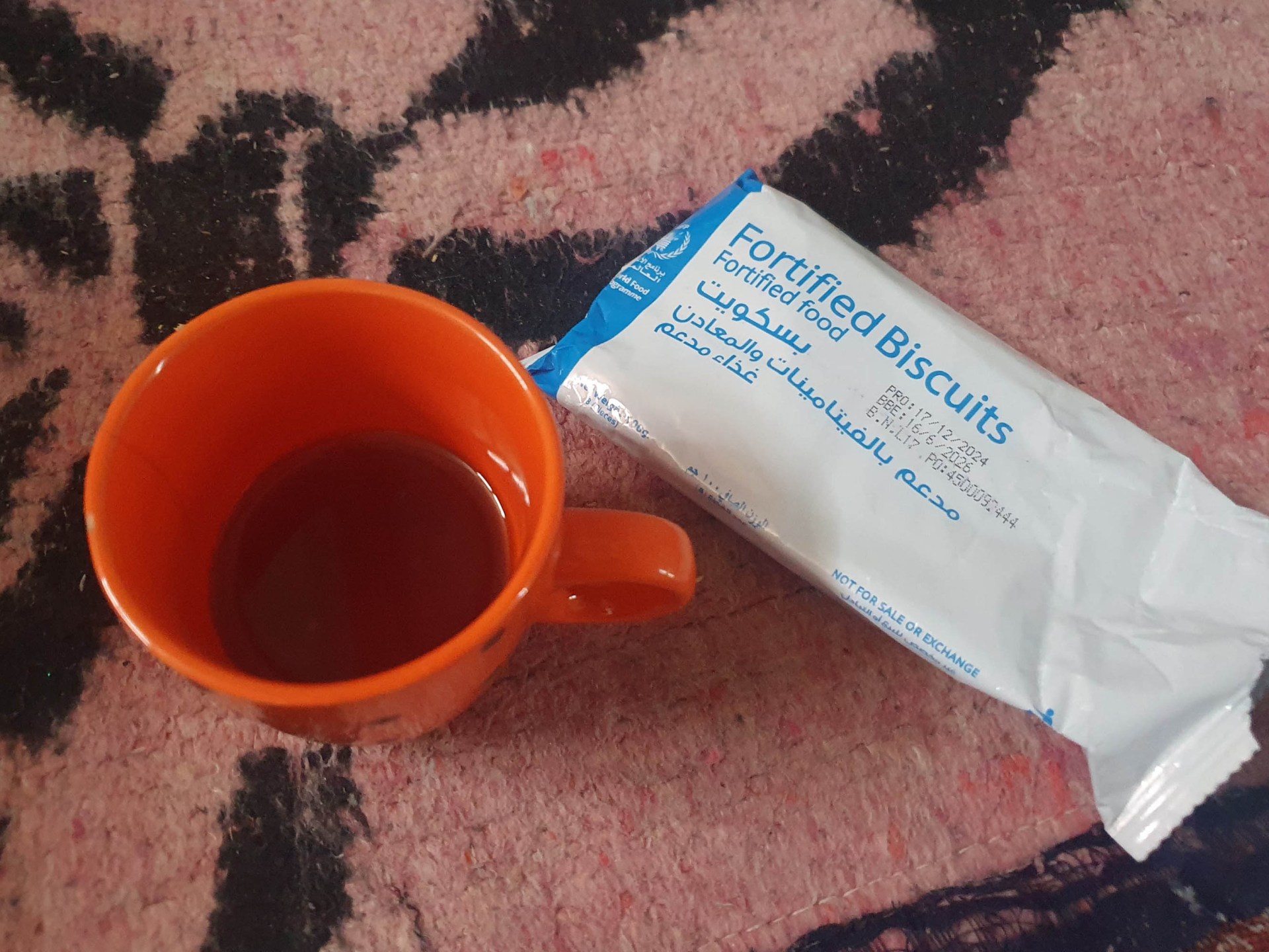 Instead, I start yet another day of genocide with a cup of tea and a Tasteless, nearly expired “Not-for-Sale WFP Fortified Biscuit”, which I bought for $ 1.50.