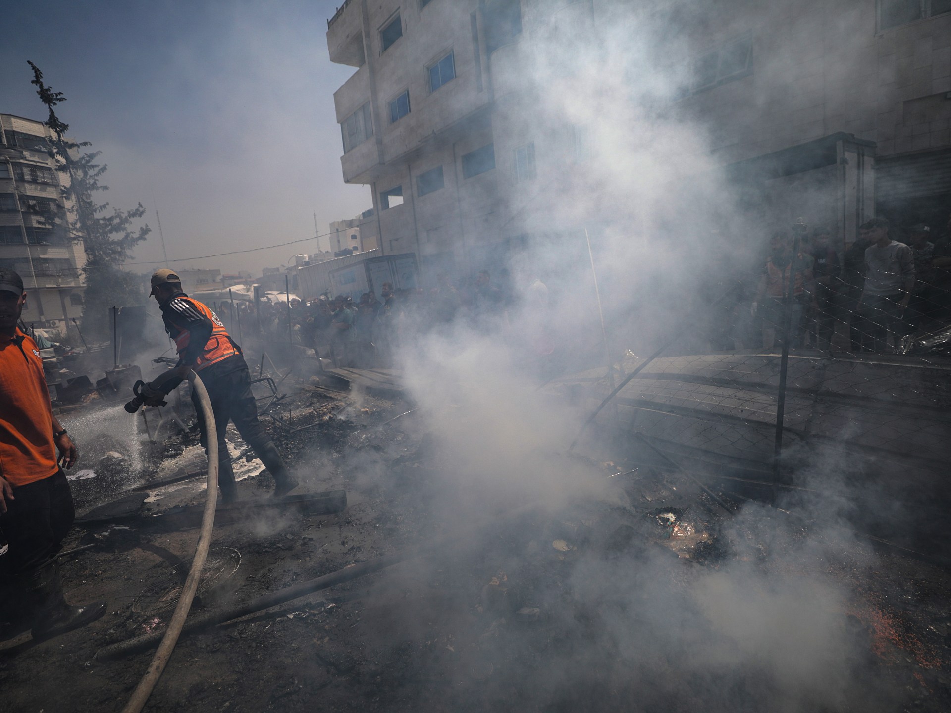 “Children are being burned while they are dragging in the tent of the display,” Al Jazeera correspondent Anas al-Sharif wrote on social media after the attack.