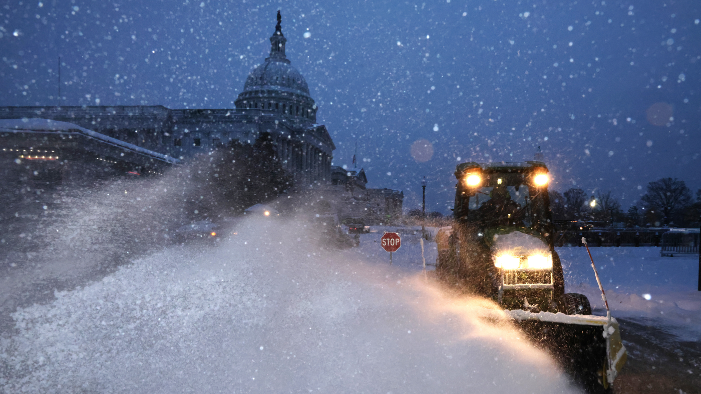 Crews work before dawn to clear snow East Front Plaza of the U.S. Capitol as a winter storm slams into the nation’s capital this week.