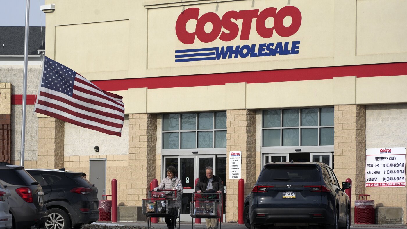 Shoppers exit a Costco warehouse in Cranberry, Pa., on Jan. 28.
