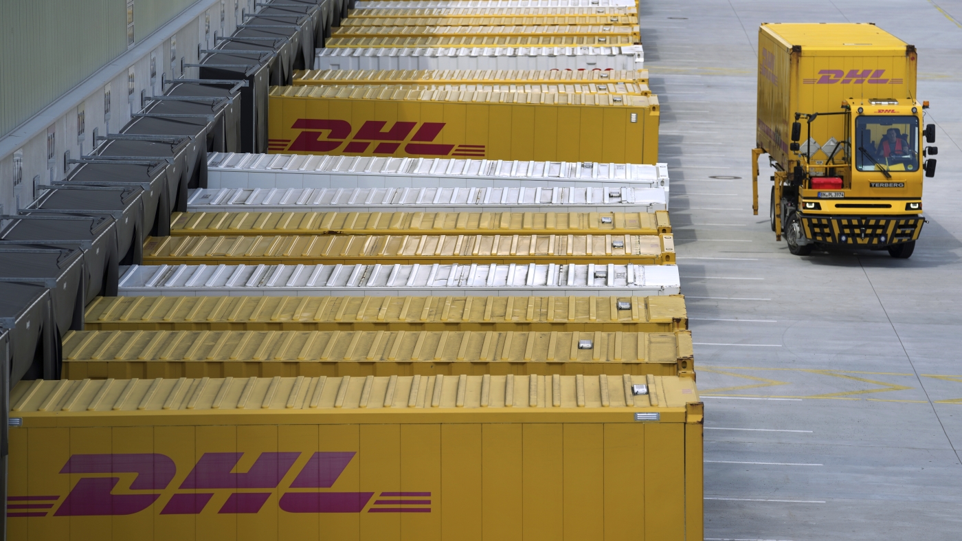 A transfer truck arrives at a DHL facility in Ludwigsfelde near Berlin, Germany, in May 2022. The company said this week it would resume shipping packages valued over $800 to individual U.S. customers.