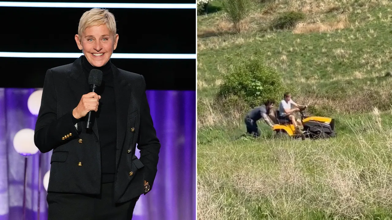 In the next clip, Degeneres struggled to drive a mower to the hill, and the screen on the screen changed to “How it ended”. The video showed Degeneres sitting on a mower as someone helps her pushing the machine from her back.