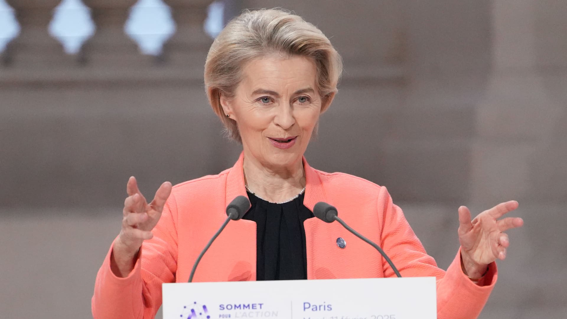 Ursula v der leyen, president of the European Commission, speak from action you are ahabrected in Paris, France, Tuesday, February 11, 2025.
