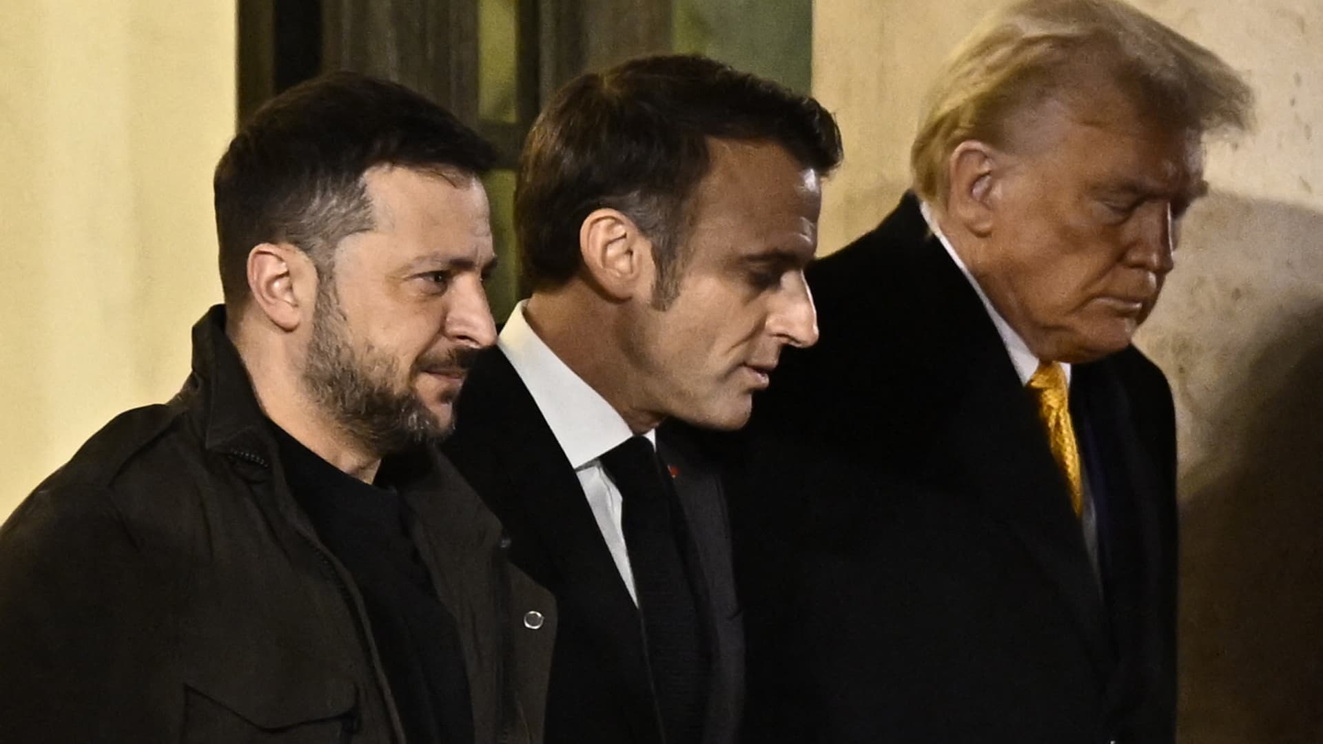The President Emmanuel Emmanuel (c) Walk with the President of Nero Donald (R) President of the Zelensky Lighthouse (L) after a reunion in the Pressed to the Pressed in Paris Few.The 2024.