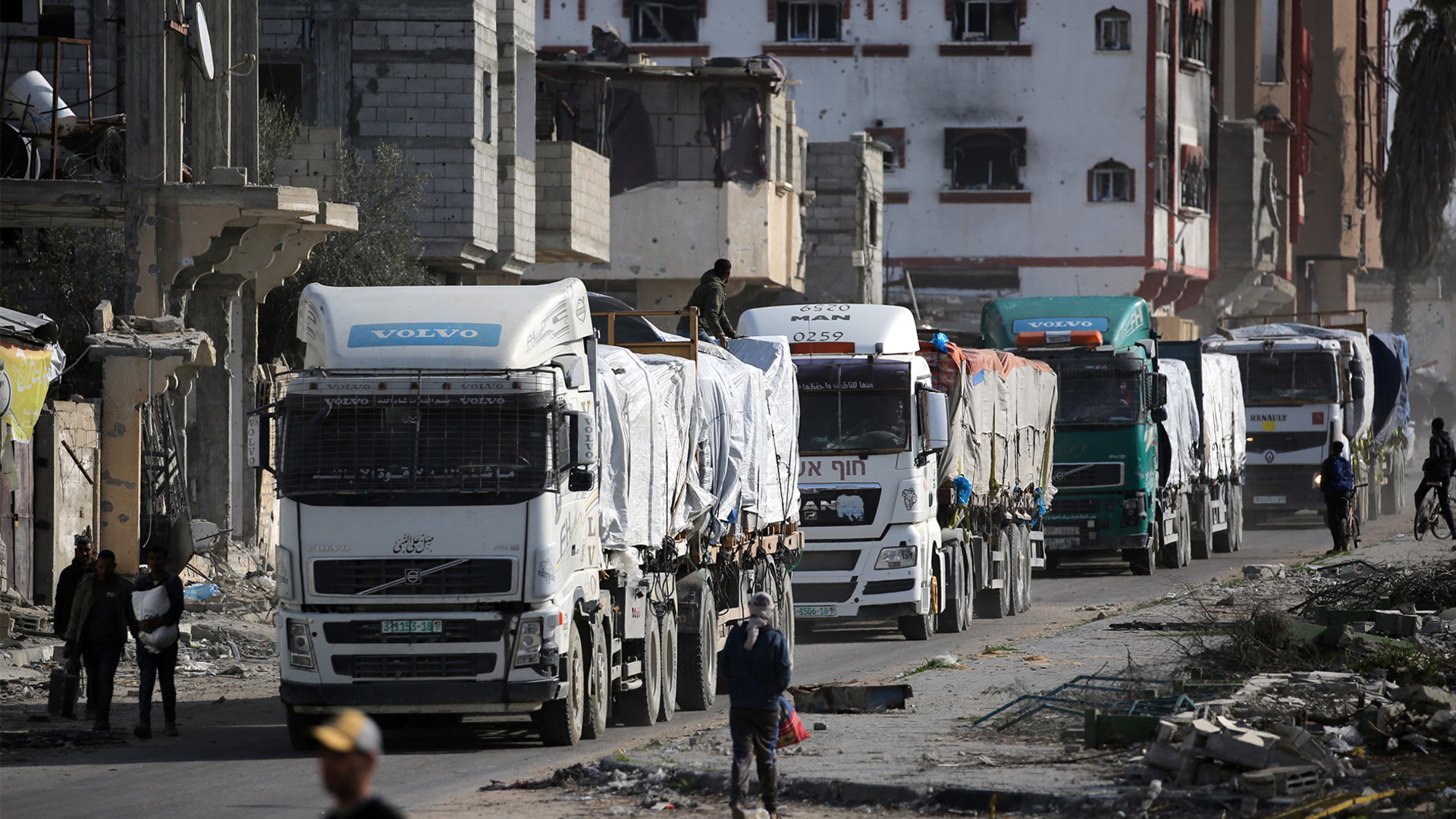 The first trucks carrying humanitarian aid have entered Gaza through the Rafah crossing as part of the implementation of the ceasefire deal between Israel and Hamas. Hundreds of trucks are expected to enter each day, bringing desperately needed food and fuel to malnourished Palestinians.