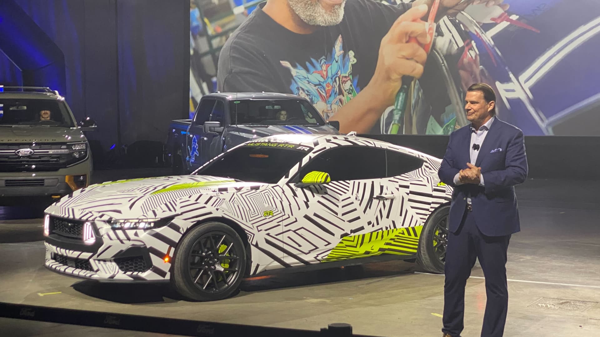 Ford Motor CEO Jim Farley during an unveiling of a special edition Ford Mustang GTD for the Detroit Auto Show on January 9, 2024.
