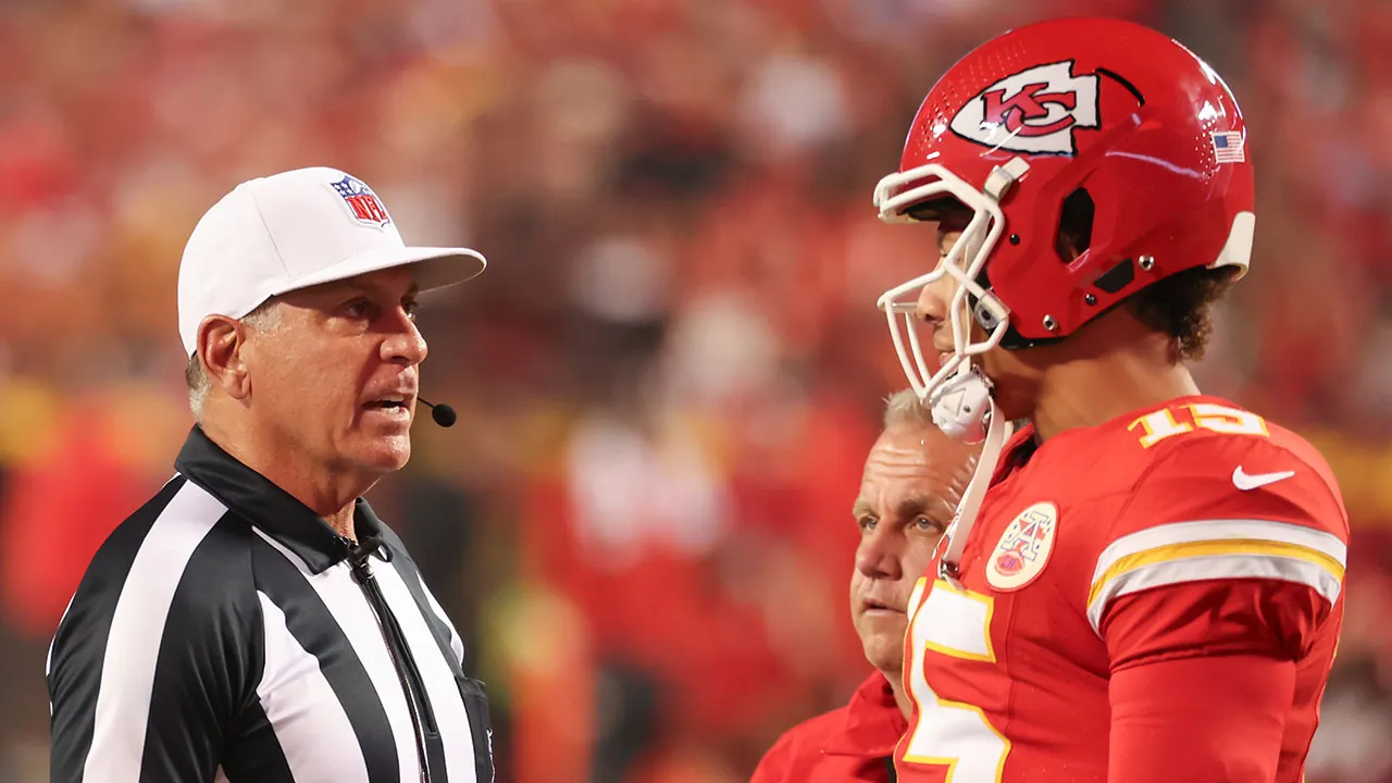 Judge Carl Cheffers talks to Patrick Mahomes during the break in the third quarter of the match between Chiefs and Houston Texans at Geh Field at the Arrowhead Stadium on December 21, 2024. In Kansas City, Mo. (David Eulitt/Getty Images)