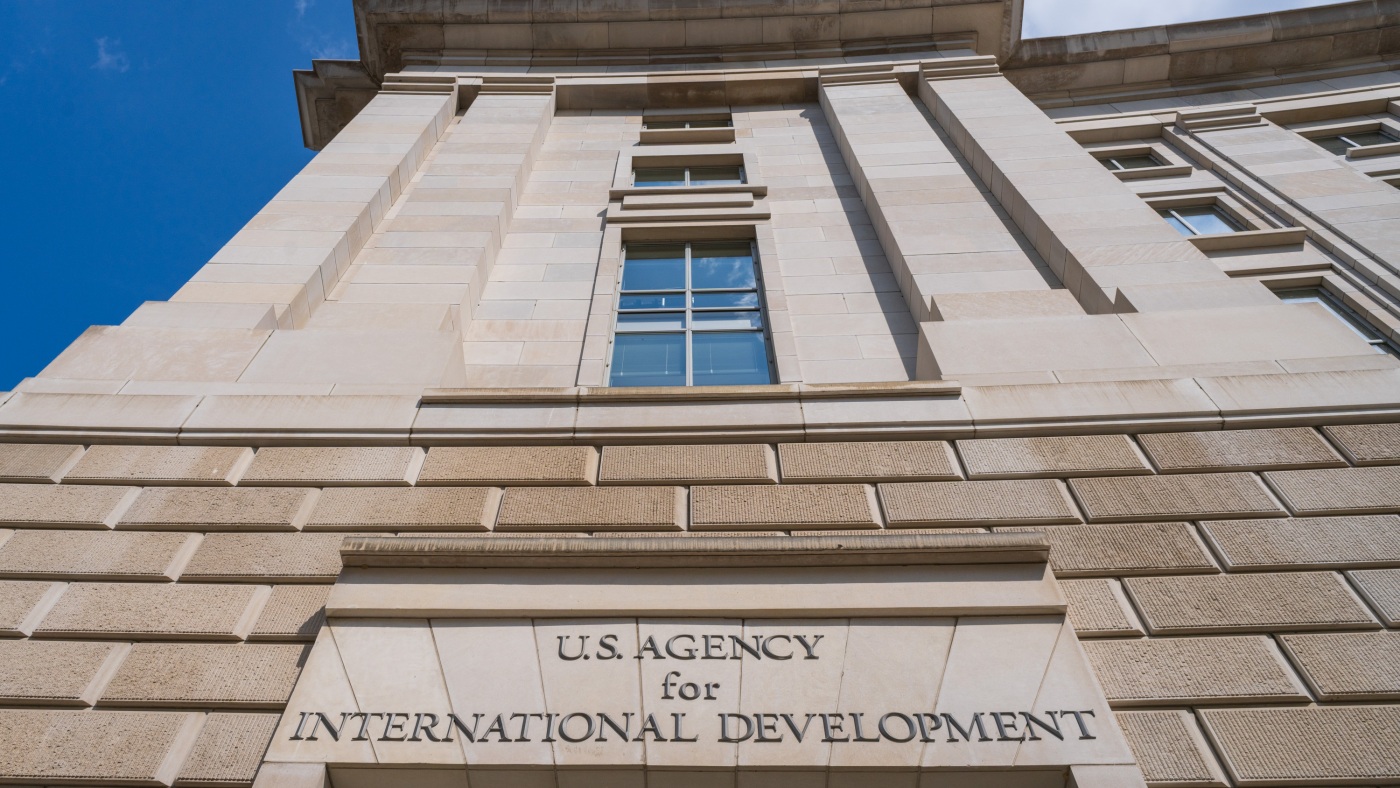 The front of the U.S. Agency of International Development headquarters in Washington, D.C. The agency funds projects that aim to alleviate poverty and disease and serve humanitarian needs around the world. A round of layoffs this week terminated nearly 400 contract employees.