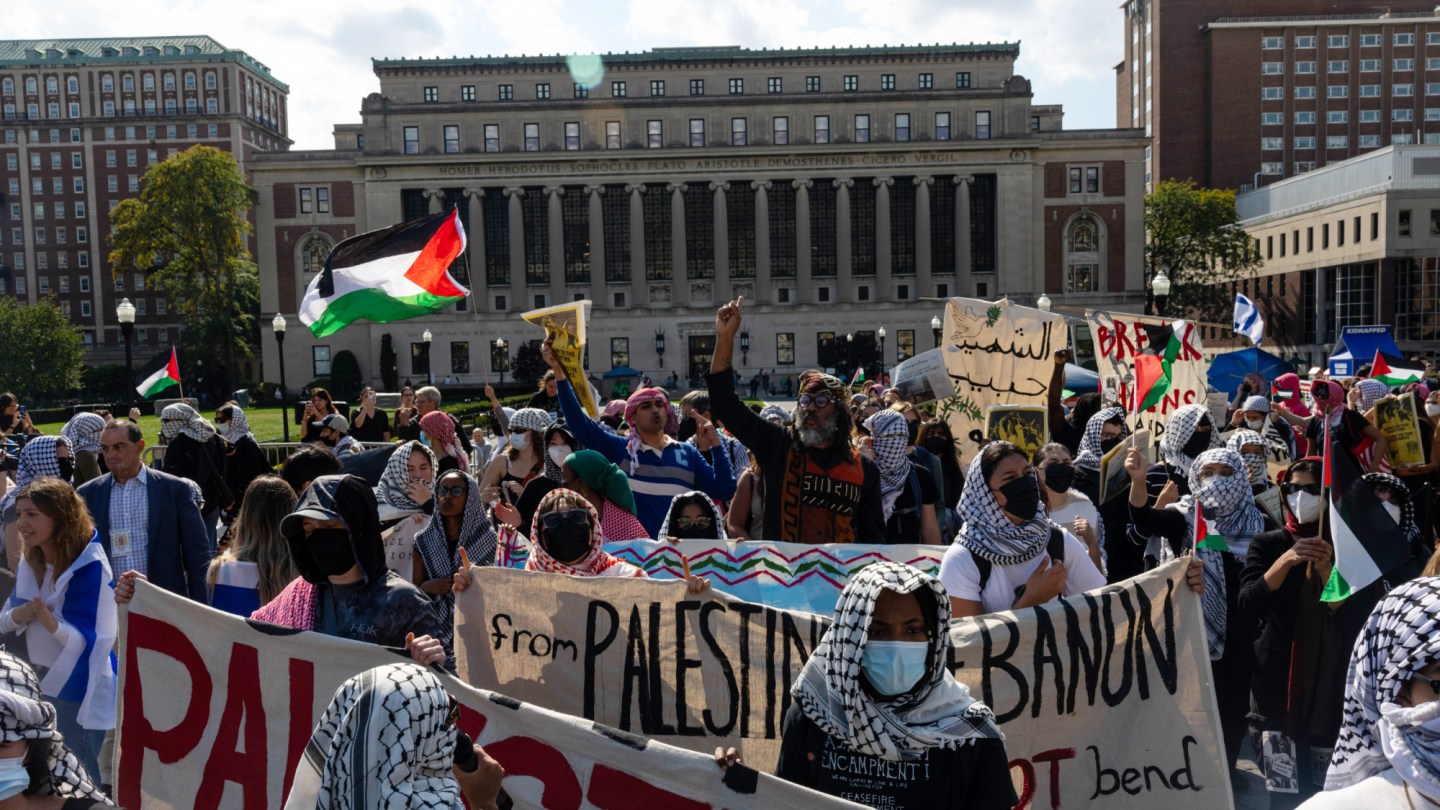 KP: And moreover there’s ample evidence of pro-Israel students attacking the encampments. I’m not speaking for every single protest that there was no bad conduct. I think we can all agree that anyone being attacked — that violence is not acceptable, that we shouldn’t be attacking people for their opinions. What I’m saying is that someone saying “from the river to the sea” — it’s in our film, a whistleblower who worked for Columbia and logged these cases of alleged antisemitism and a lot of it was people saying that or wearing a keffiyeh to class. These are not antisemitic things, these are people calling for an end to a 75-year occupation and humans rights abuses that have been condemned worldwide. It’s legitimate speech against — ironically — an actual violent occupation that’s happening in Palestine.