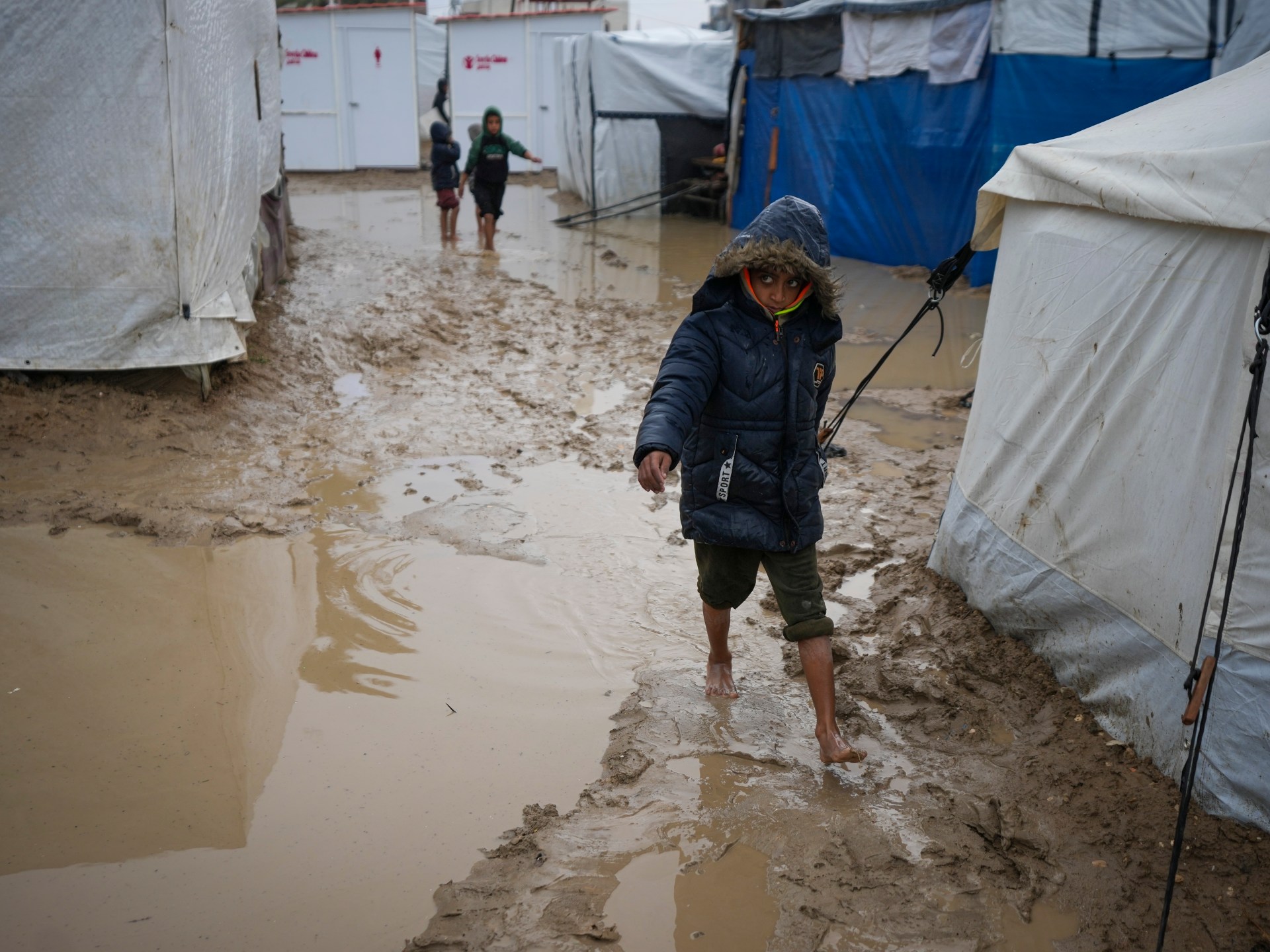 Days of heavy rain have flooded hundreds of makeshift shelters across the enclave, piling more misery on forcibly displaced Palestinians as Israel continues to restrict entry of humanitarian aid. At least six infants have died from the cold in recent days.
