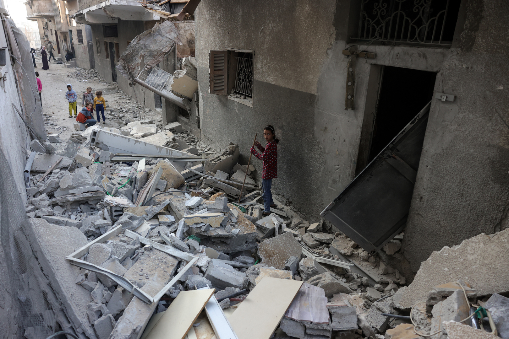 Palestinians searched for bodies after an Israeli airstrike leveled a building in Jabalia, as Israel ramped up its gaza offensive. At least 16 were killed Friday as aid trickled in for the first time in two months. Al-Aawda Hospital was hit and aid trucks were looted.