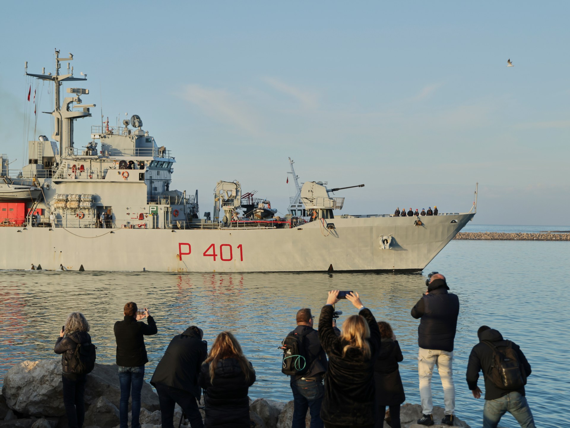 An Italian Naval Ship Lands 49 People in Albania in a third transfer under a controversial 2023 deal between Rome and Tirana.