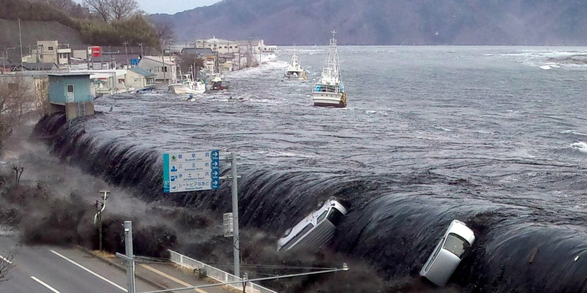This photo taken by a Miyako City official on March 11, 2011 shows a tsunami that broke an embankment and flowed toward the city of Miyako in Iwate prefecture shortly after a 9.0 magnitude earthquake hit the region in the north Japan.