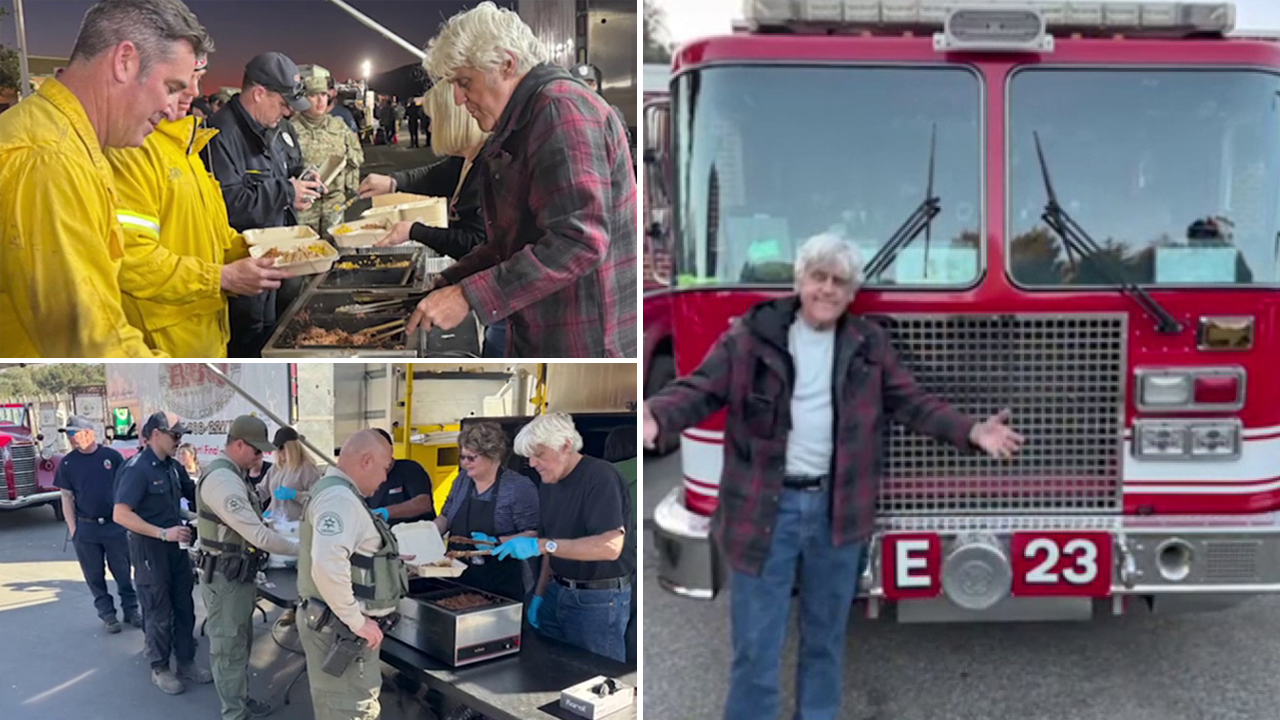 Jay Leno serves meals to LA first responders as deadly wildfires rage on in California