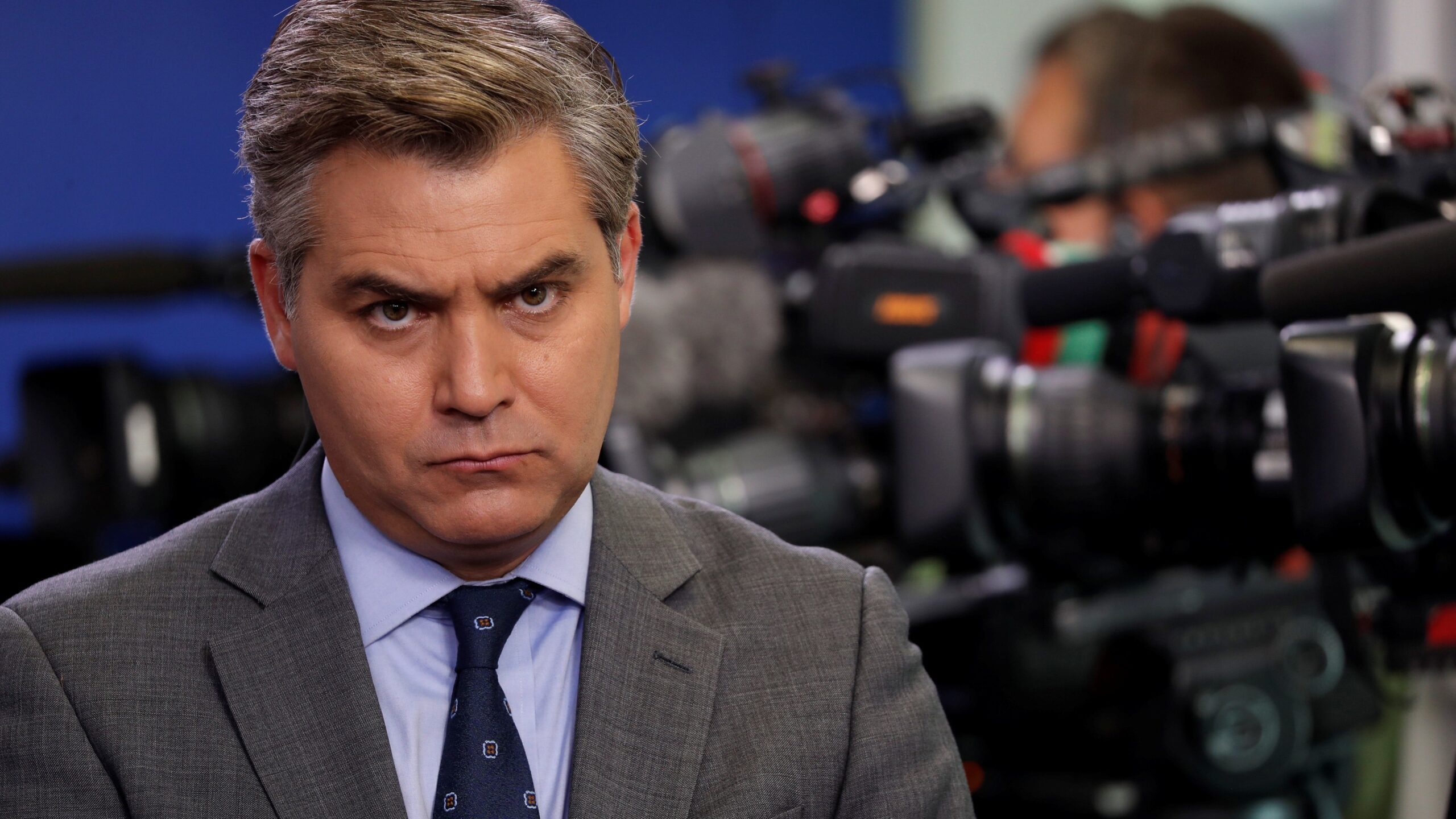 CNN’s Jim Acosta became a regular fixture in the late-night circle during the first Trump administration, which is rare for a white house journalist in previous presidents. (Randy Holmes via Getty Images))