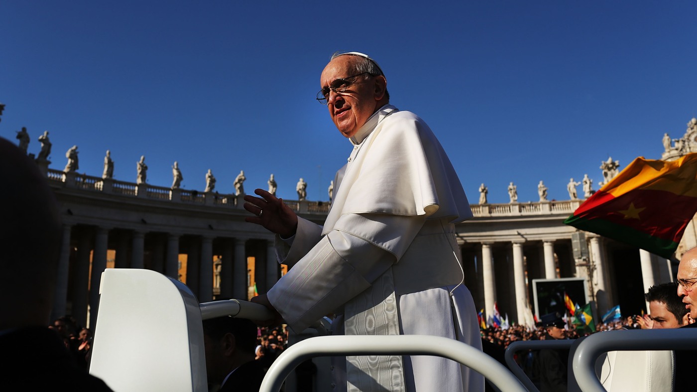 Pope Francis drives through the crowds during the Inauguration Mass for the Pope in St. Peter’s Square on March 19, 2013, in Vatican City, Vatican. The mass was held in front of an expected crowd of up to one million pilgrims and faithful who filled the square and the surrounding streets to see the former Cardinal of Buenos Aires officially take up his role as pontiff.