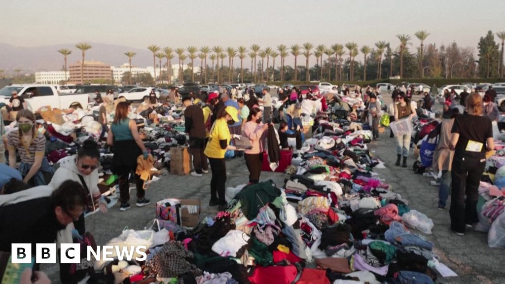 A donation center has been set up in the Santa Anita Park parking lot, where volunteers are helping those in need.