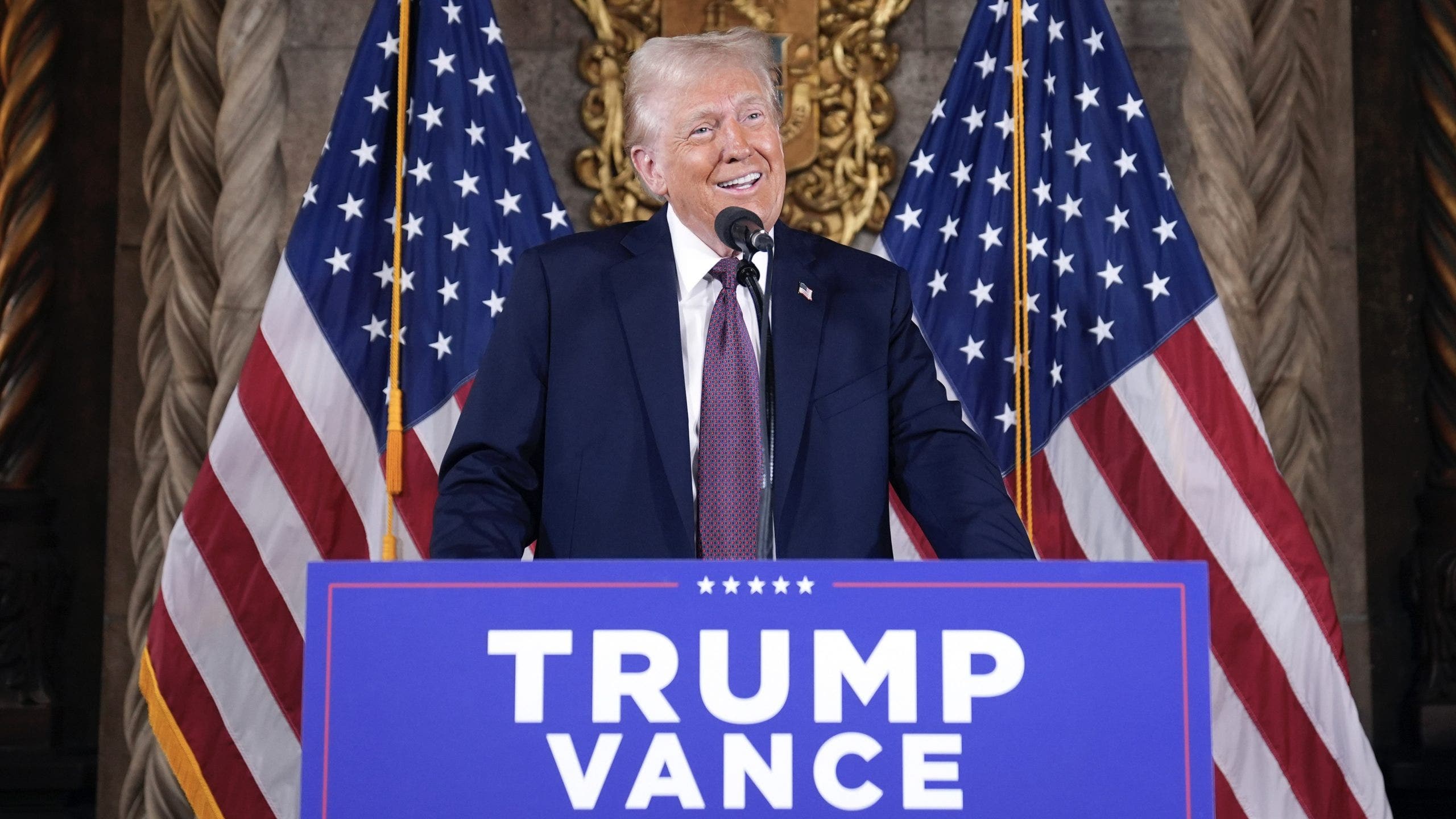 President-elect Donald Trump speaks during a press conference at Mar-a-Lago on Tuesday, Jan. 7, 2025, in Palm Beach, Florida. (AP Photo/Evan Vucci)