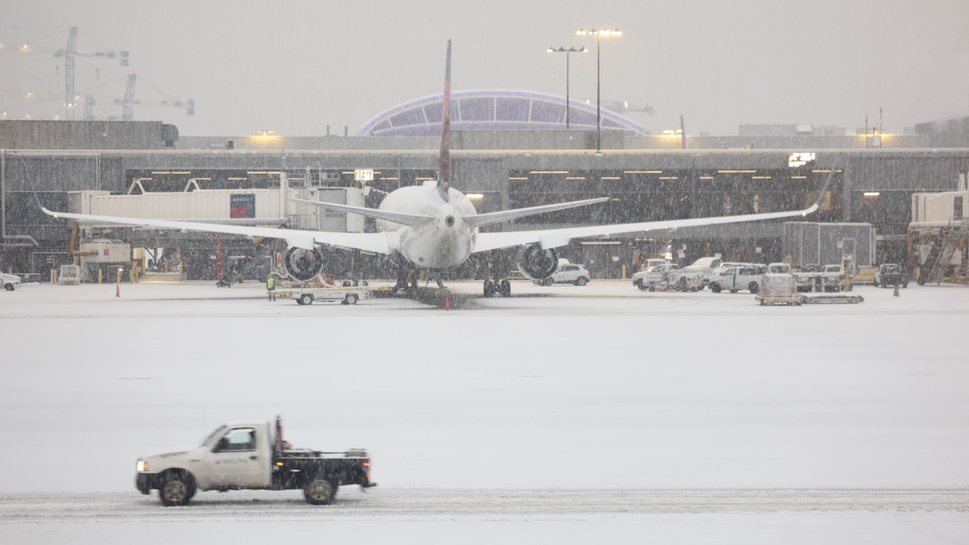Snow blankets the Hartsfield-Jackson Atlanta International Airport on Friday as a winter storm moves into the Atlanta area.
