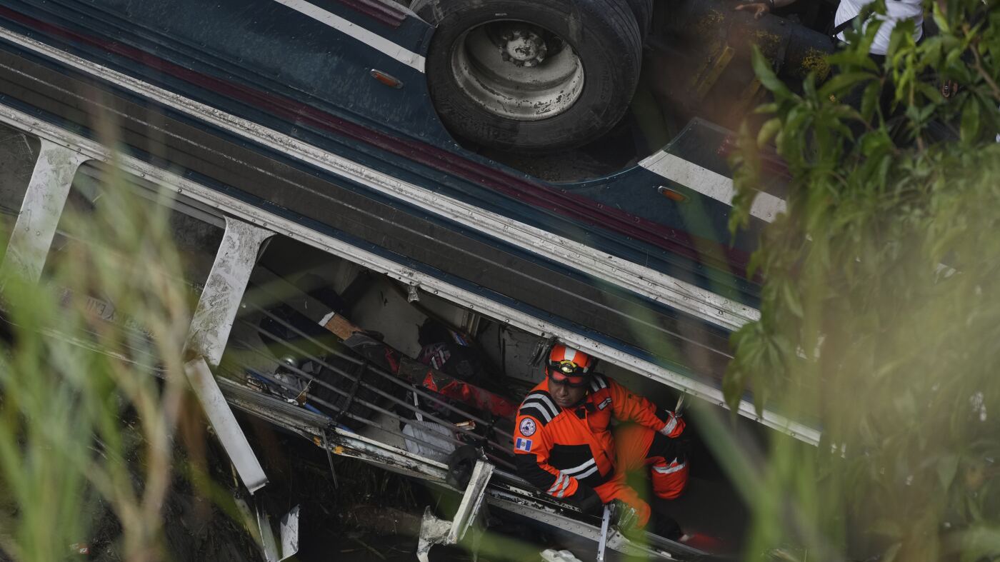 Firefighting spokesperson Edwin Villagran said a multi-vehicle crash sent the bus off the road and into the steep gorge below the bridge before dawn. Others were seriously injured.