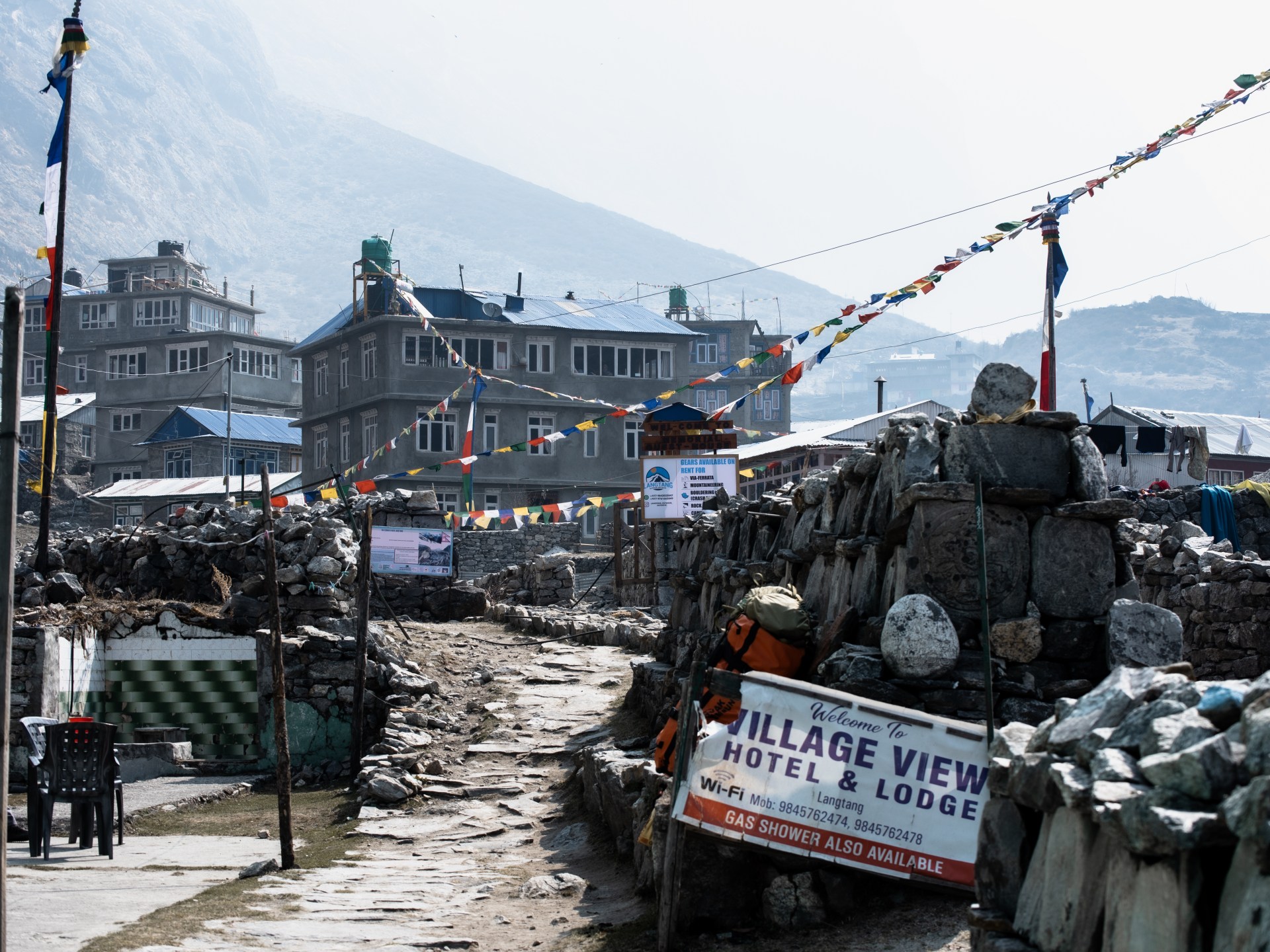 Large machinery cannot be carried in at all, leaving the old Langtang village still largely buried Beneath the rubble. Instead of attempting to excavate the debris, a new village was constructed nearby. Because the village sits within Langtang National Park, the Langtangpa had limited space to expand. Residents were forced to rebuild in a cramped area free of avalanche debris and compete for space for their guesthouses.