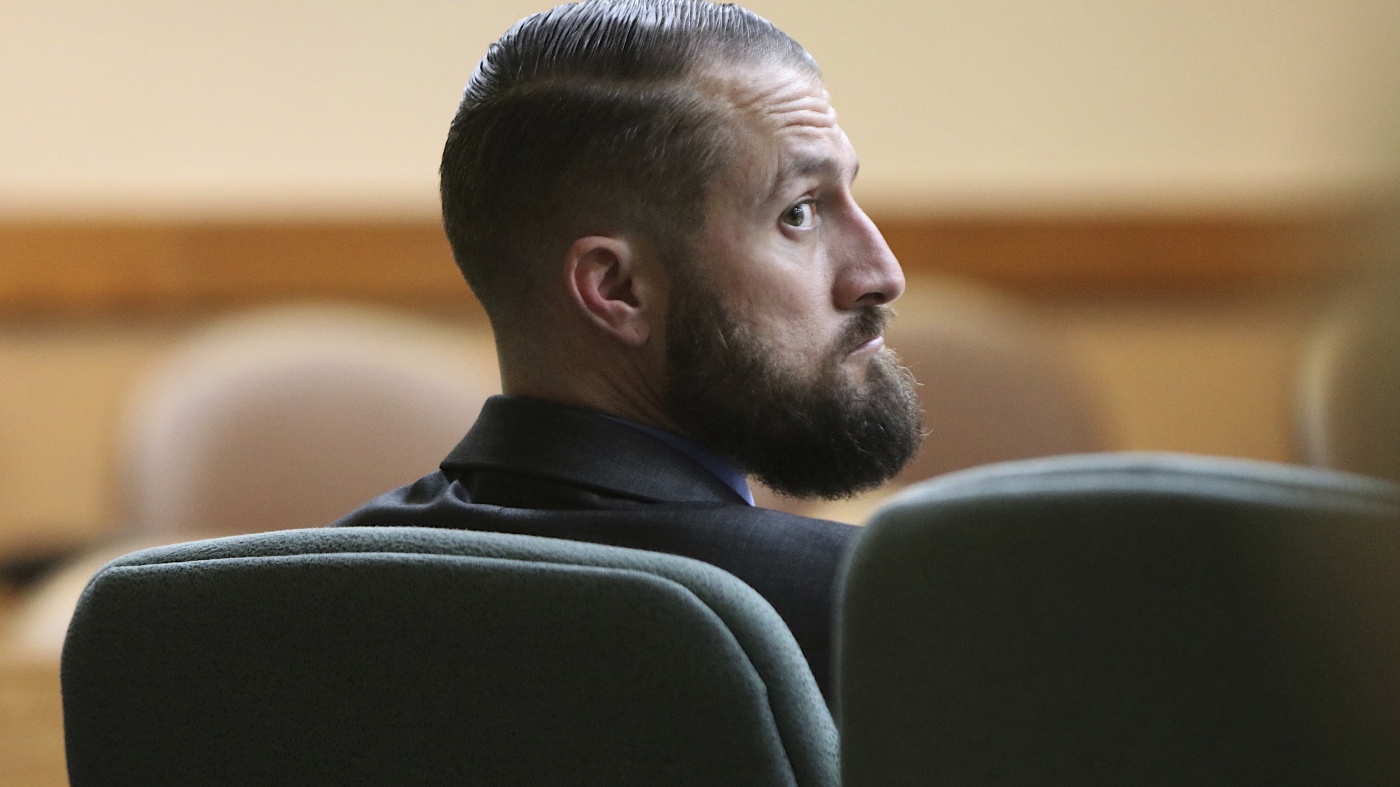 Former Las Cruces Police officer Brad Lunsford looks toward the gallery during his trial in the fatal shooting of Presley Eze, in Las Cruces, N.M., on Feb. 4.