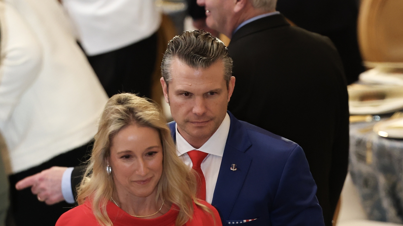 Pete Hegseth, President-elect Donald Trump’s nominee for Secretary of Defense and his wife Jennifer Rauchet depart after inauguration ceremonies in the U.S. Capitol on January 20, 2025. The couple met while working for Fox News.