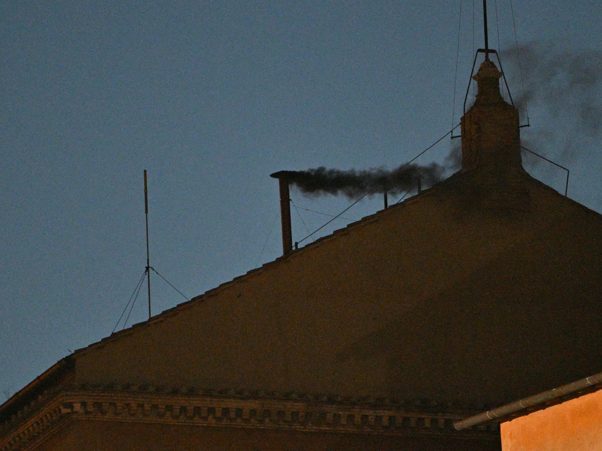 Black smoke rose from the chimney of the sistine chapel, signaling that the papal confave did not select a new pope.