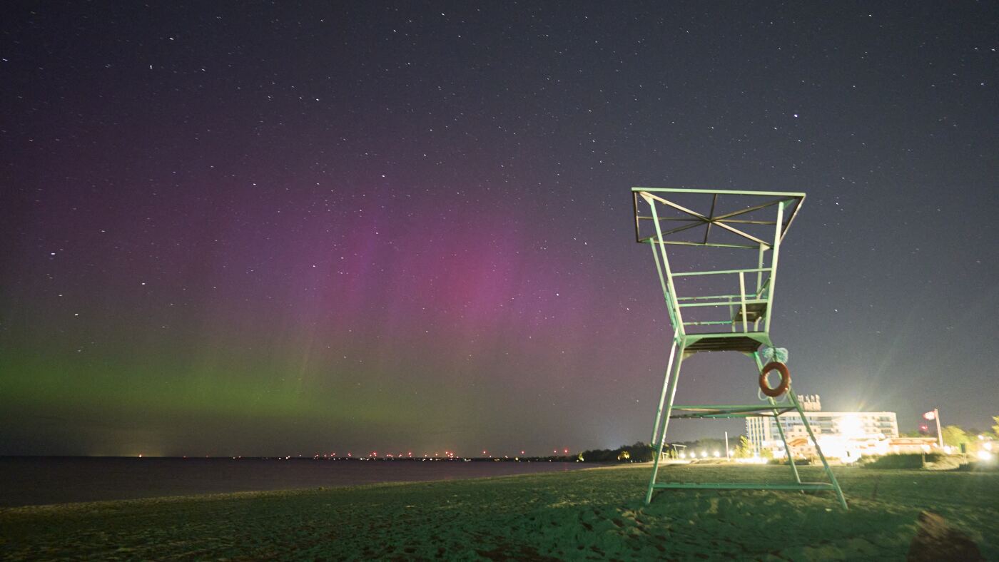 The northern lights illuminate the night sky in Grand Bend, Ontario, Canada, during a geomagnetic storm on May 12, 2024.