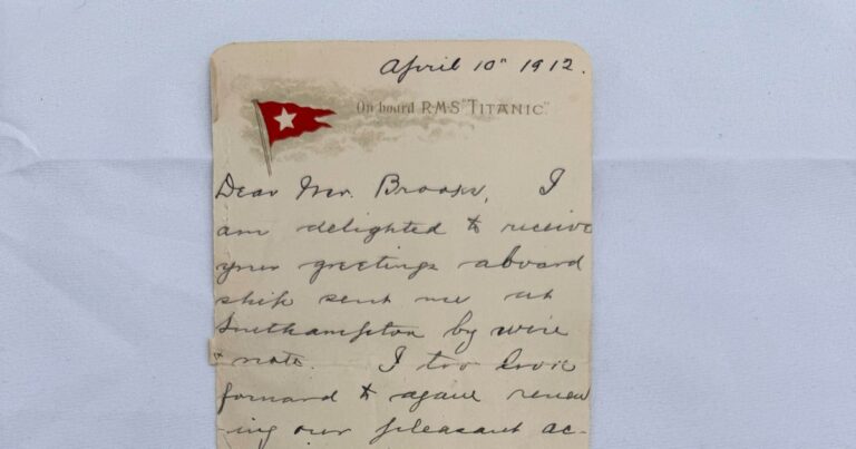 A lettercard penned by one of the Titanic’s most well-known survivors from…