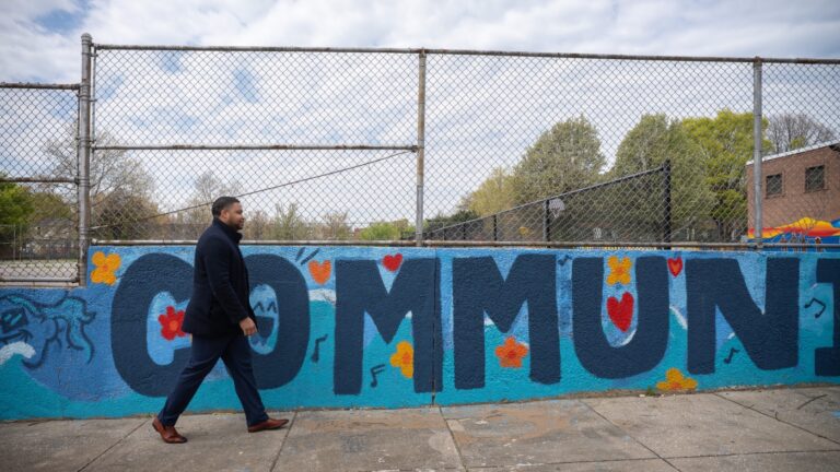 Tracey Malone, executive director of the Sandtown-Winchester Community Collective, stands outside a…
