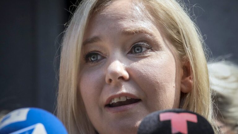Virginia Giuffre speaks during a news conference outside a Manhattan court in…