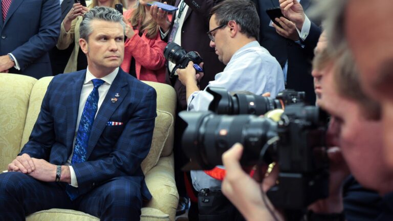 Secretary of Defense Pete Hegseth attends an Oval Office meeting with President…