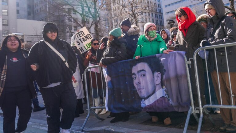 Luigi Mangione’s supporters gathered outside Manhattan Criminal Court as he appeared in…