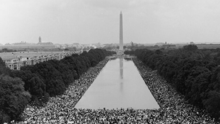 A view from the Lincoln Memorial toward the Washington Monument at the…