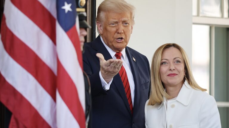 President Trump greets Italian Prime Minister Giorgia Meloni outside the West Wing…