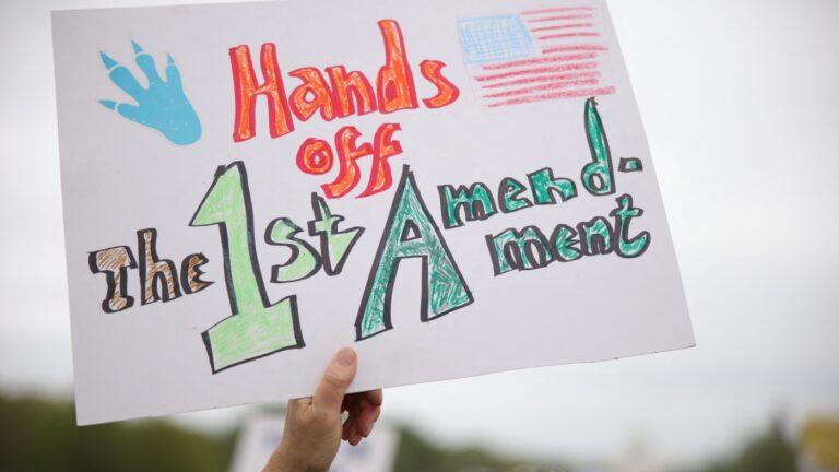 People gathered to protest the Trump administration during the ‘Hands Off’ protest…