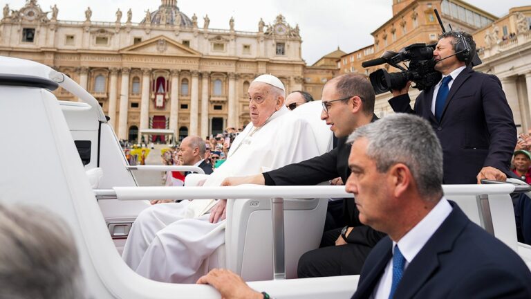 Pope Francis visits St. Peter’s Square in his Popemobile after being at…