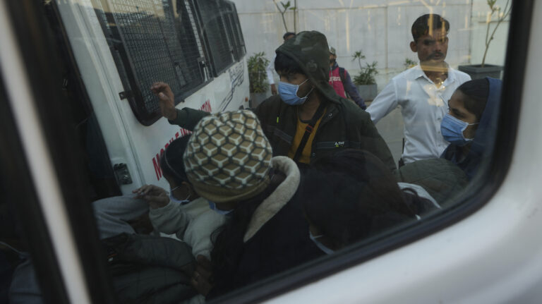 Immigrants, wearing masks, deported from the United States, who were among those…